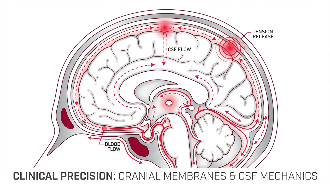 Most concussion programs treat symptoms. Dynamic Brain Healing™ treats the mechanical environment surrounding the brain — the fascia, dura mater, cranial membranes, occipital system, CSF dynamics, and glymphatic flow.
