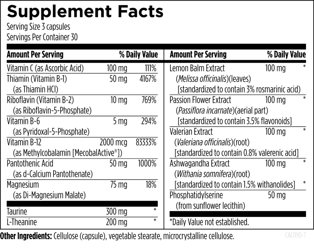 CatecholaCalm™ contains a blend of vitamins, minerals, and adaptogenic herbs designed to support a healthy response to stress.