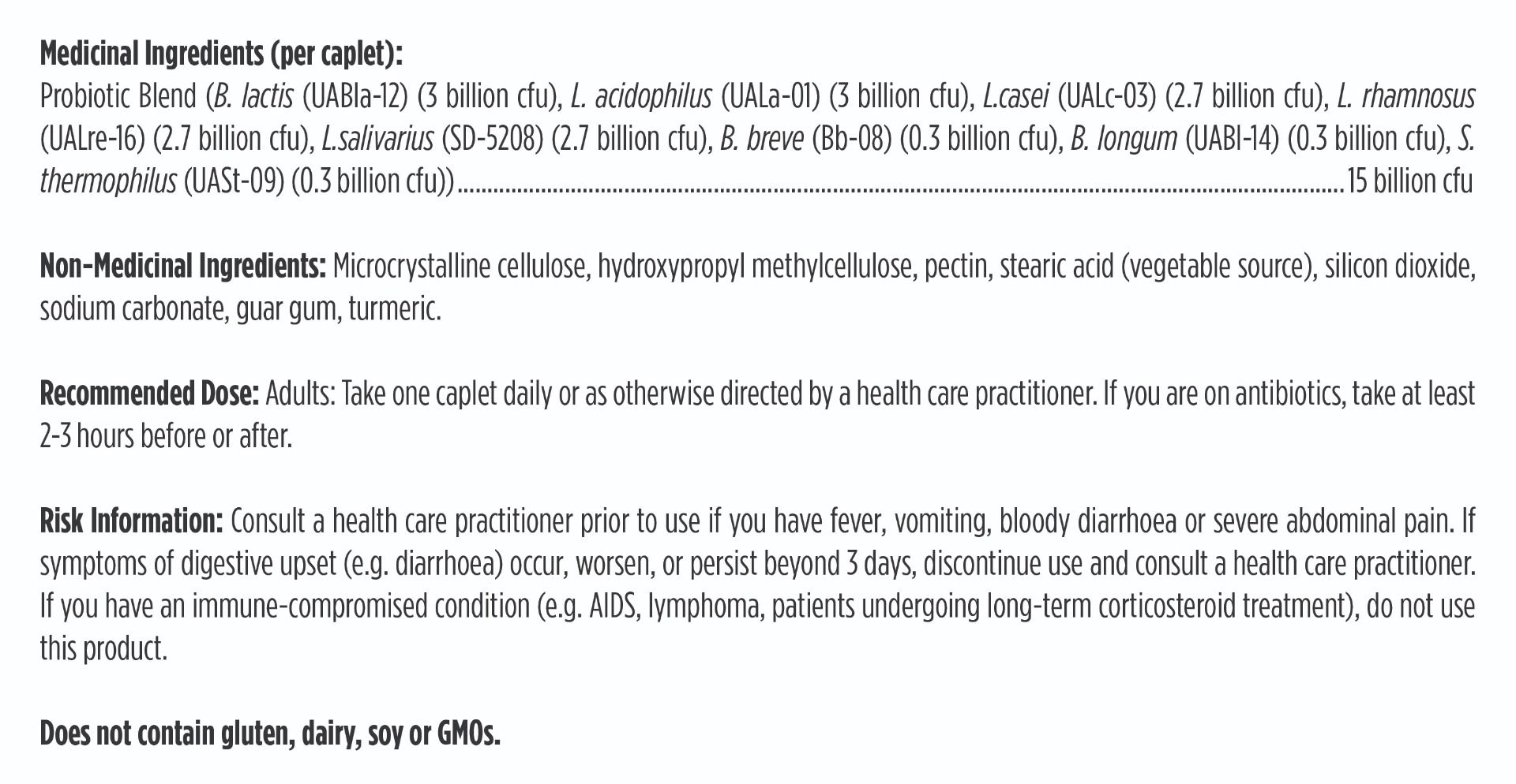 • 15 billion CFUs per caplet